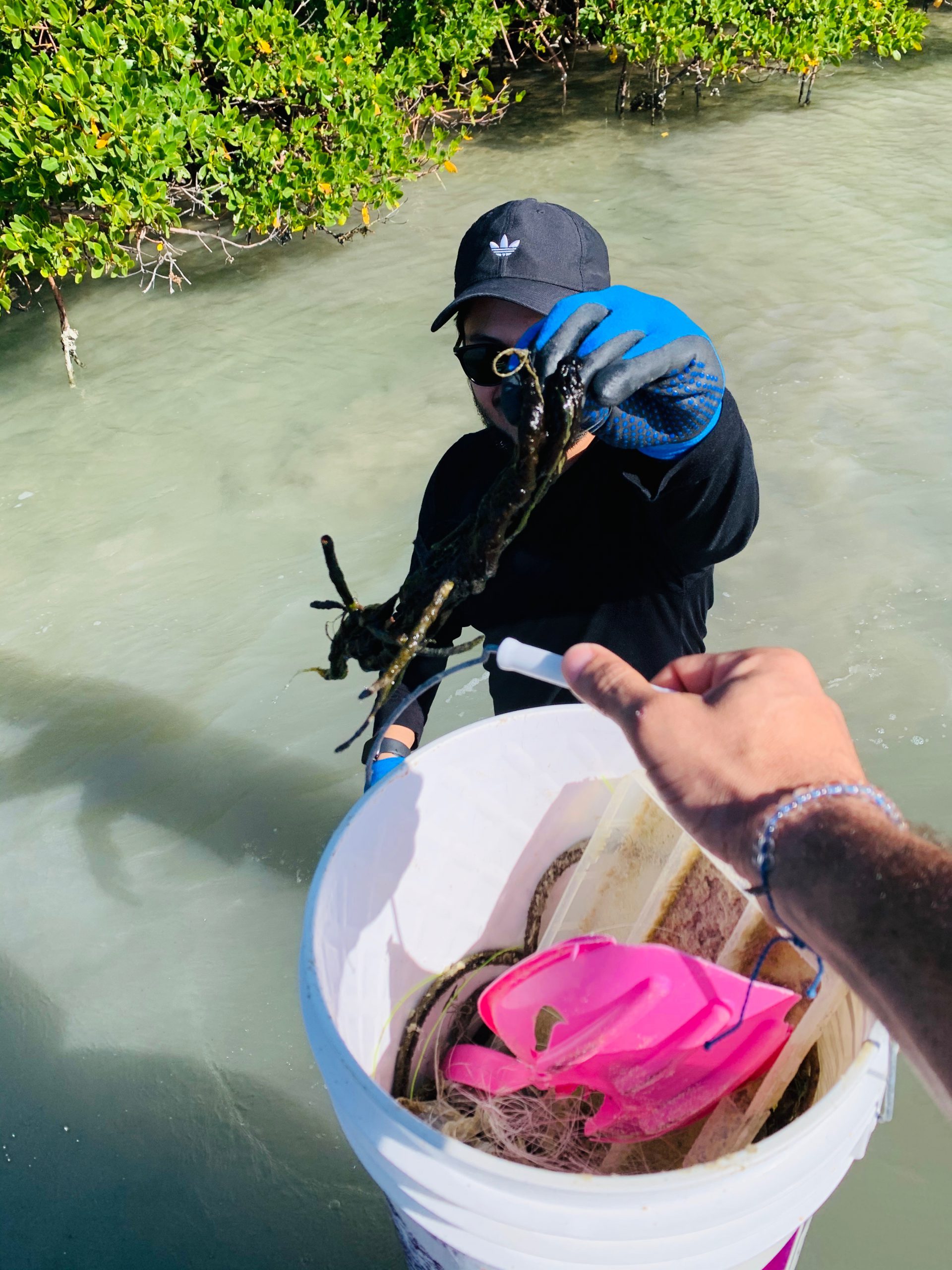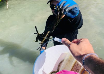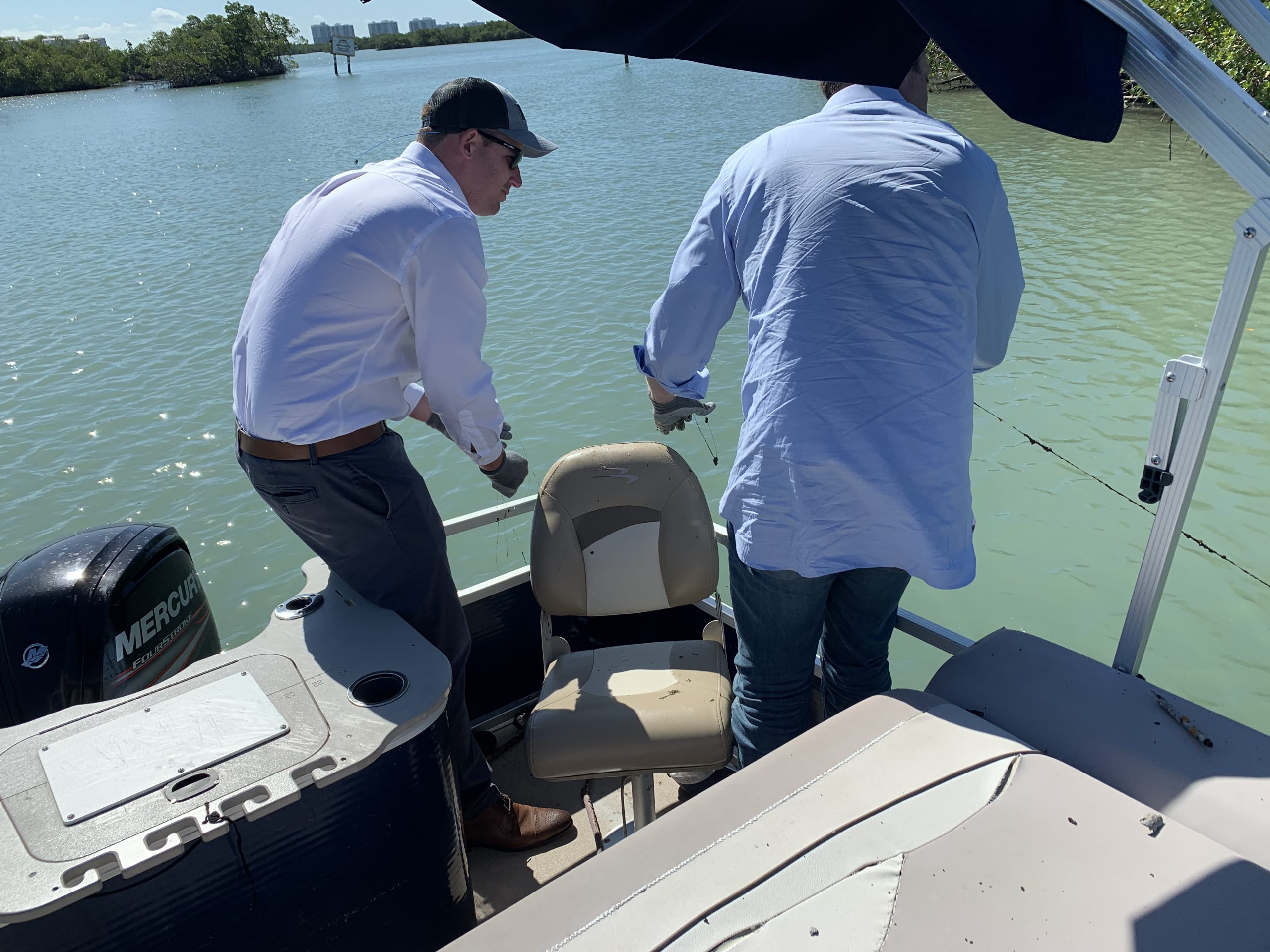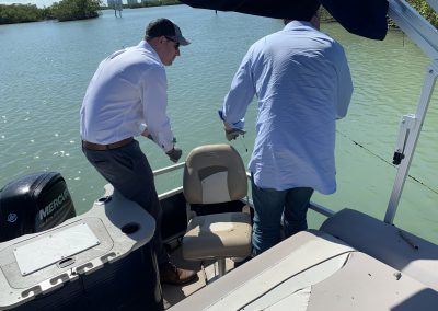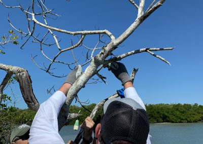 The day began at 8 AM, with an assembly of volunteers at the FGCU Vester Marine Field Station and concluded with lunch, provided by BlackJack Pizza and a seminar conducted by Dr. Mike Parsons, FGCU Professor of Marine Science.  The project entailed a three hour on-the-water cleanup, with the boat flotilla traveling in tandem from the Vester Station to Wiggins Pass, south to Bonita Beach Road and north to Mound Key.