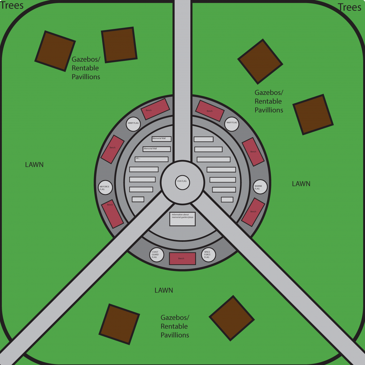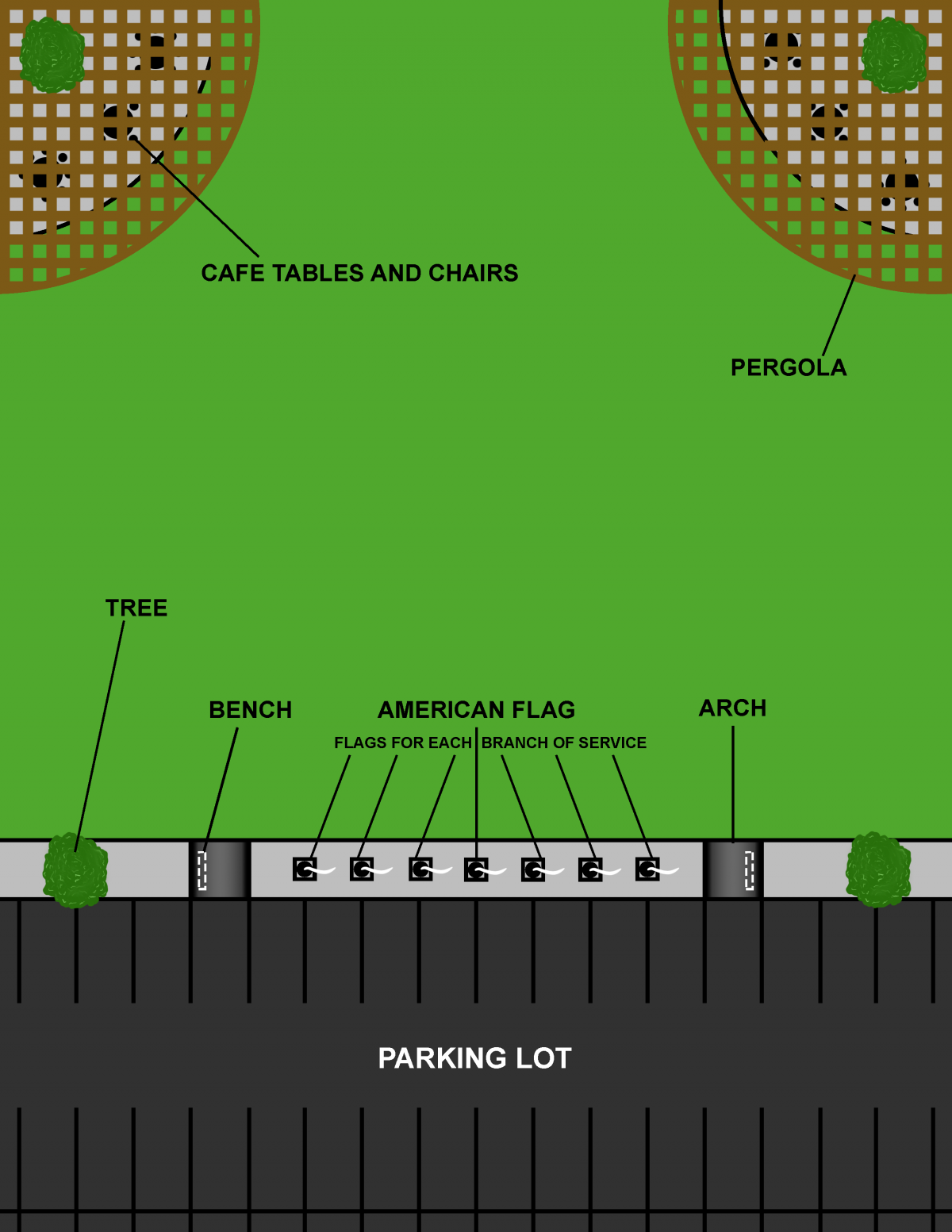 The purpose of the “Veterans Community Pocket Park” is to have an area for relaxation, contemplation and maybe a picnic, in a pleasant attractive location where veterans, their families and children can enjoy some time to reflect on the services provided by our veterans. It is not intended to be a memorial park, but will be a place to read, contemplate, enjoy the ambience and the various flags representing different branches of the military and Coast Guard.